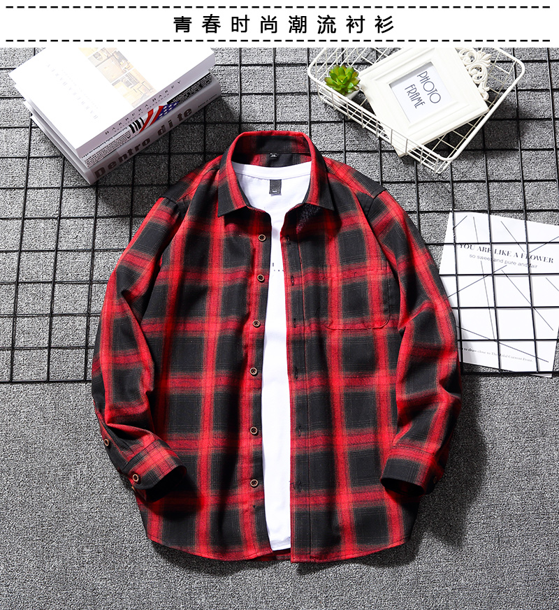 Plaid shirt men's long-sleeved loose tide brand Hong Kong style fat man plus fertilizer to increase 300 catties large size men's spring coat
