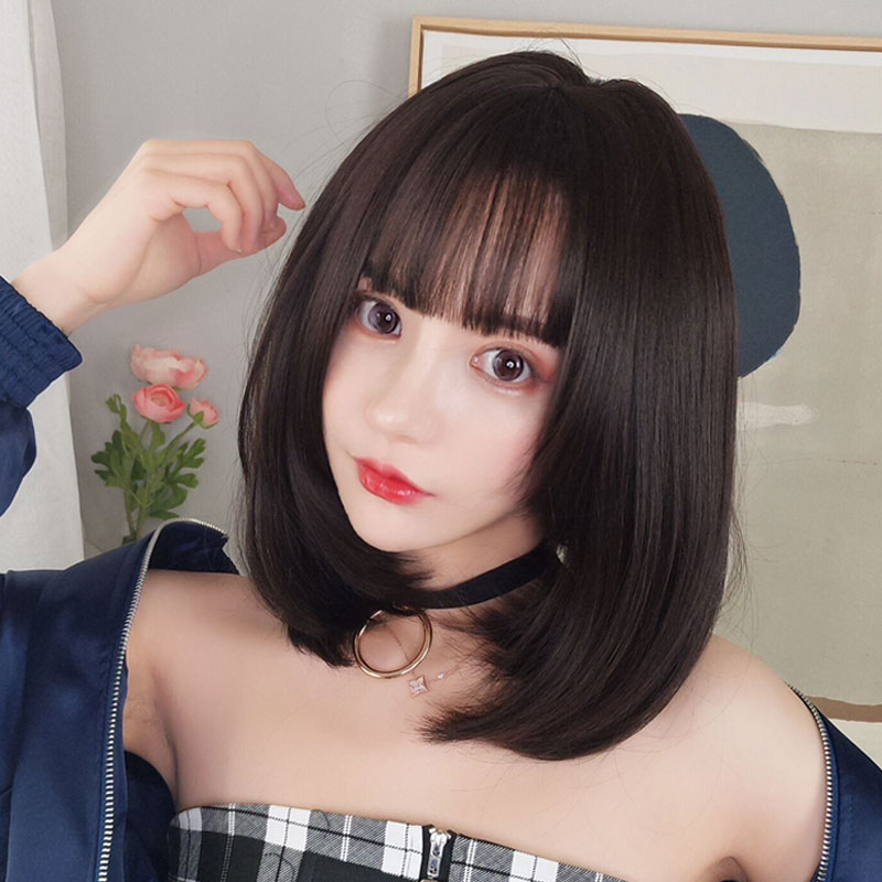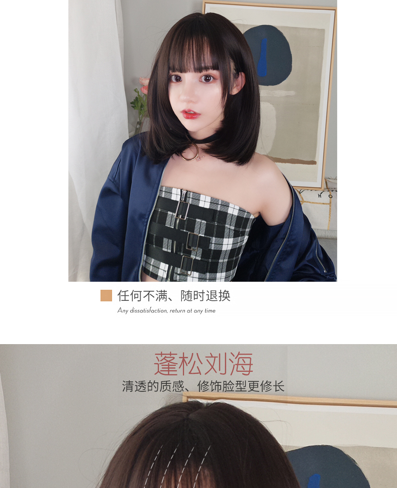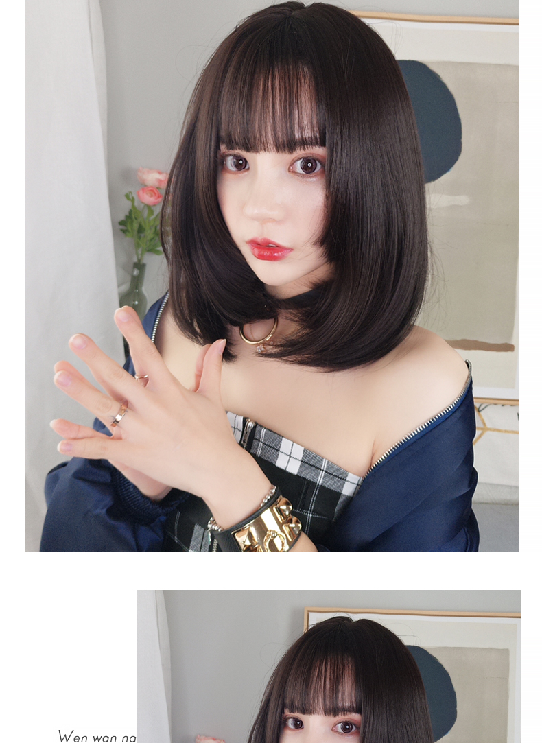 Wig woman short hair natural realistic medium long hair net red short curly hair repair round face styling temperament wig sleeve lock bone hair
