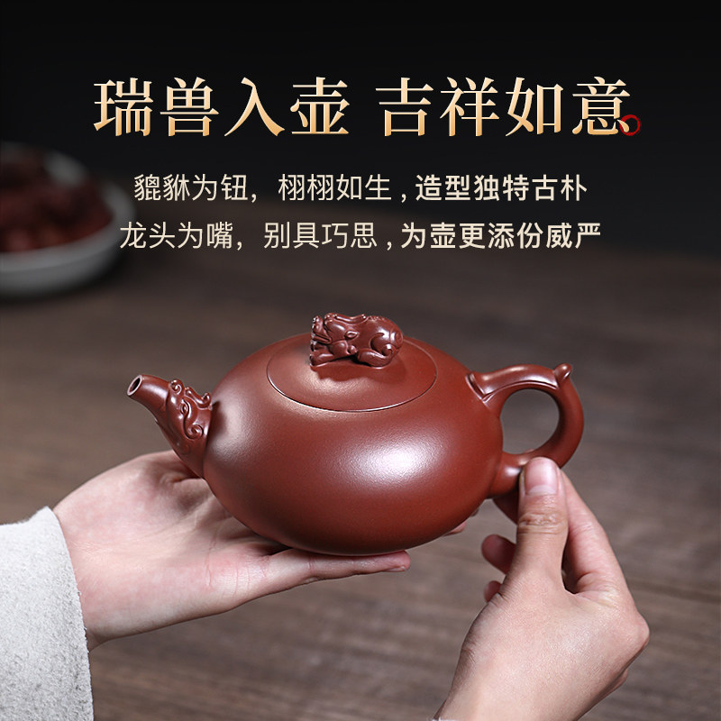 Guyuetang Yixing famous purple sand pot Pure handmade authentic teapot Kung Fu tea original mineral dragon blood sand Dragon Royal Pixiu