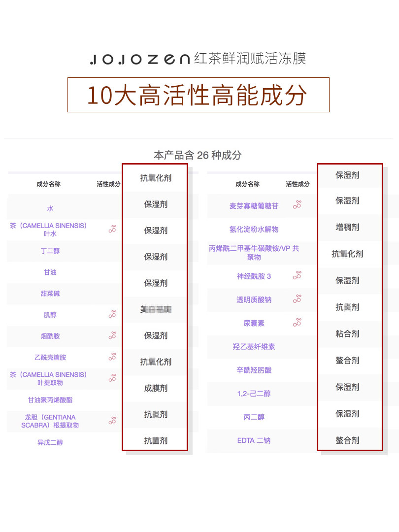 JOJOZEN Black tea fresh moisturizing jelly mask Moisturizing moisturizing mask for women to close pores brighten skin tone improve dullness 120g