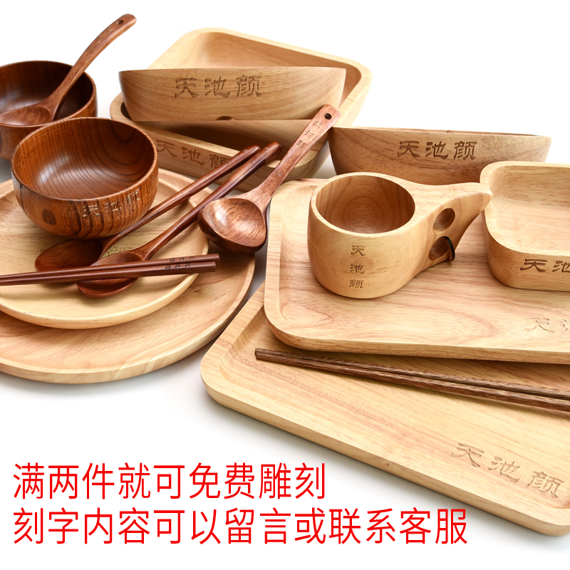 Wooden bowl household Japanese-style large salad bowl with handle wooden tableware creative dessert fruit salad bowl solid wood