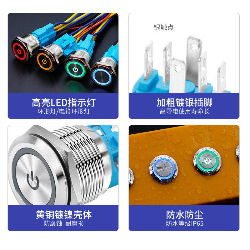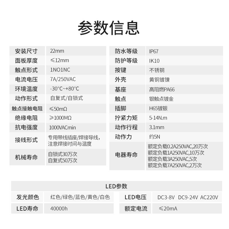 Self-locking no light Self-locking flat ring light Symbol white light 9-24v Self-locking flat ring light Symbol white light 220v Self-locking flat ring light Symbol blue light 9-24v Self-locking