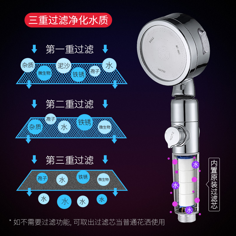 Silver pressurized shower (filter 3-speed upgrade) + space aluminum punch-free stand