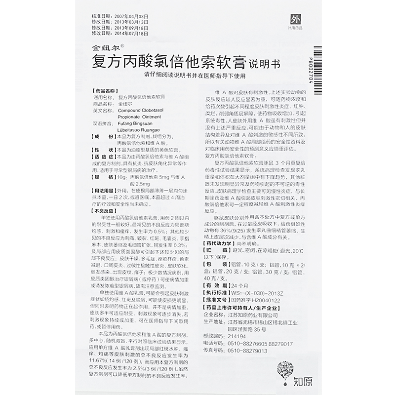 40g large specifications COTTON STICK) Kinnuel Compound Propionate chlorine twice He Ointment Gold Button Cream 40g Psoriasis Psoriasis Cream silver Psoriasis Ointment for external use Ointment With Via Sour Cream Chinaware non-liniment Cream Cream