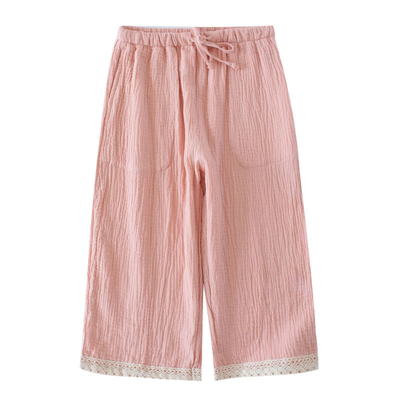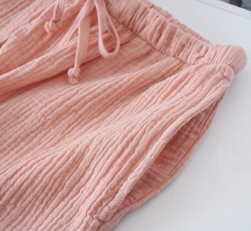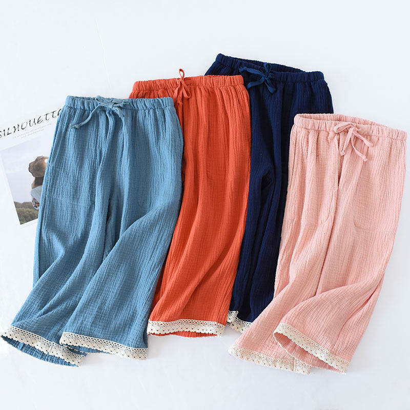 Japan's new spring and summer ladies crepe pajama pants thin cotton seven-point home pants double-layer gauze solid color casual pants - Taobao