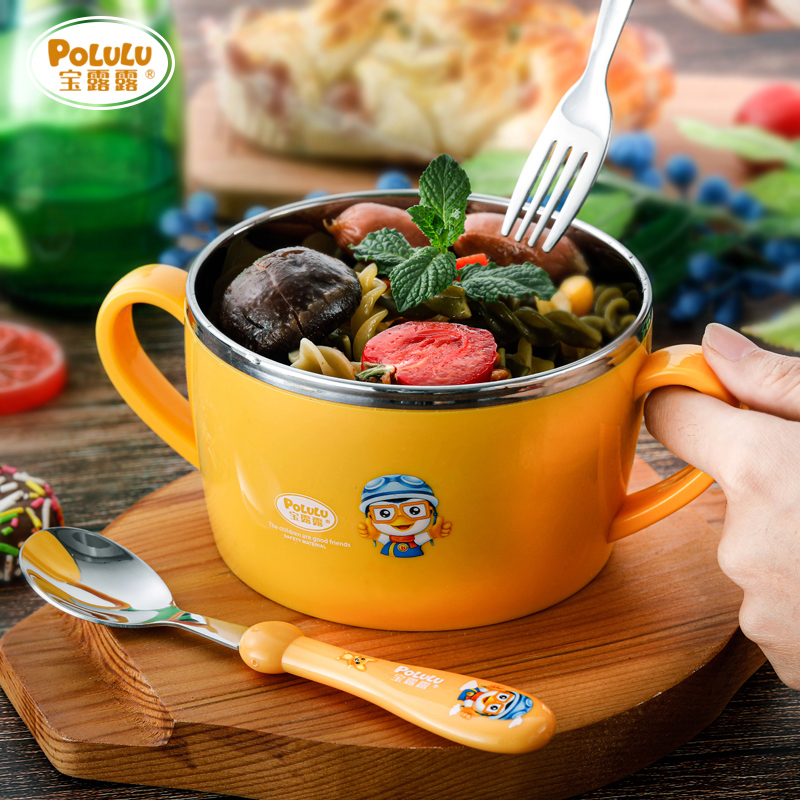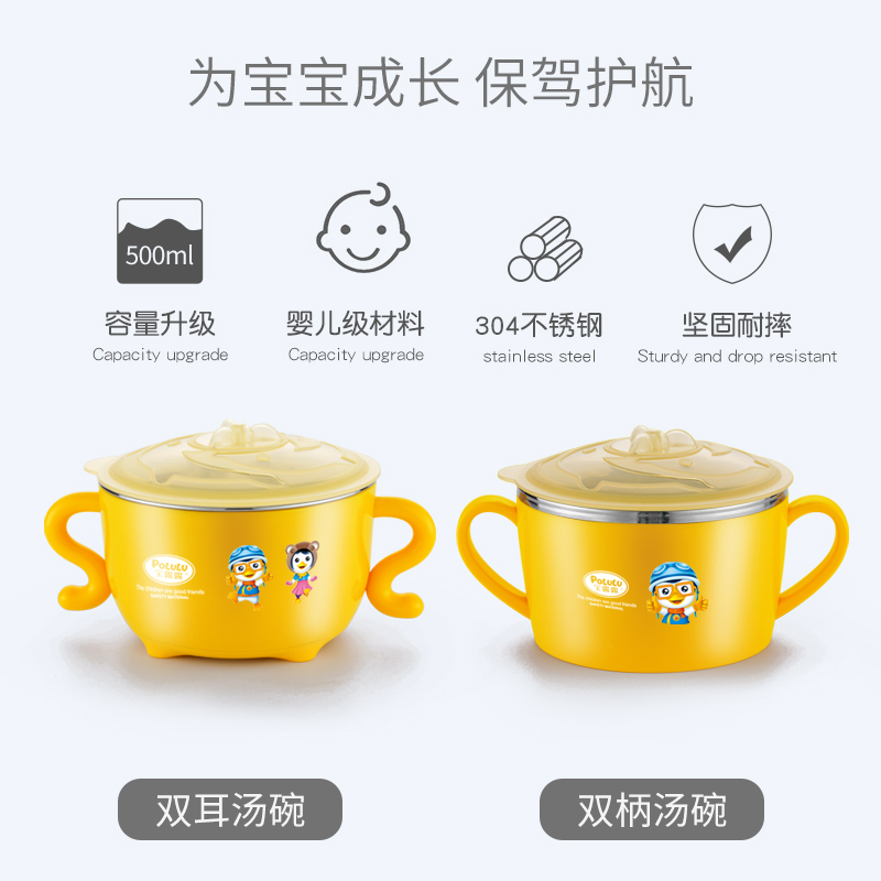 Children's tableware 304 stainless steel bowl binaural bowl Anti-fall and anti-scalding handle Baby food bowl Primary school meal bowl