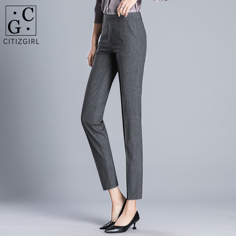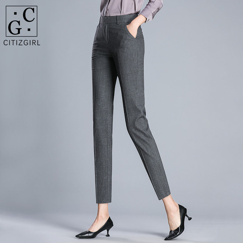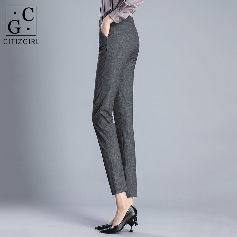 CG suit pants women's nine-point pants 2021 spring new slim straight tube thin professional tooling cigarette pipe long pants