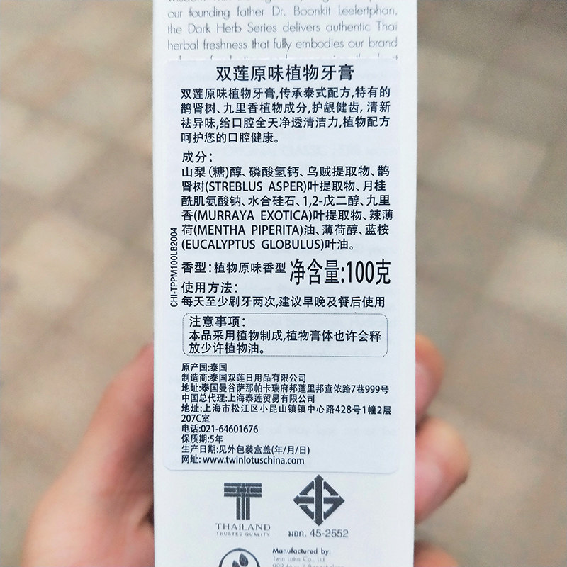 (Two) Shuanglian Natural Plant Toothpaste Thailand Imports TwinLotus Original Cool Teeth Free Fluoride