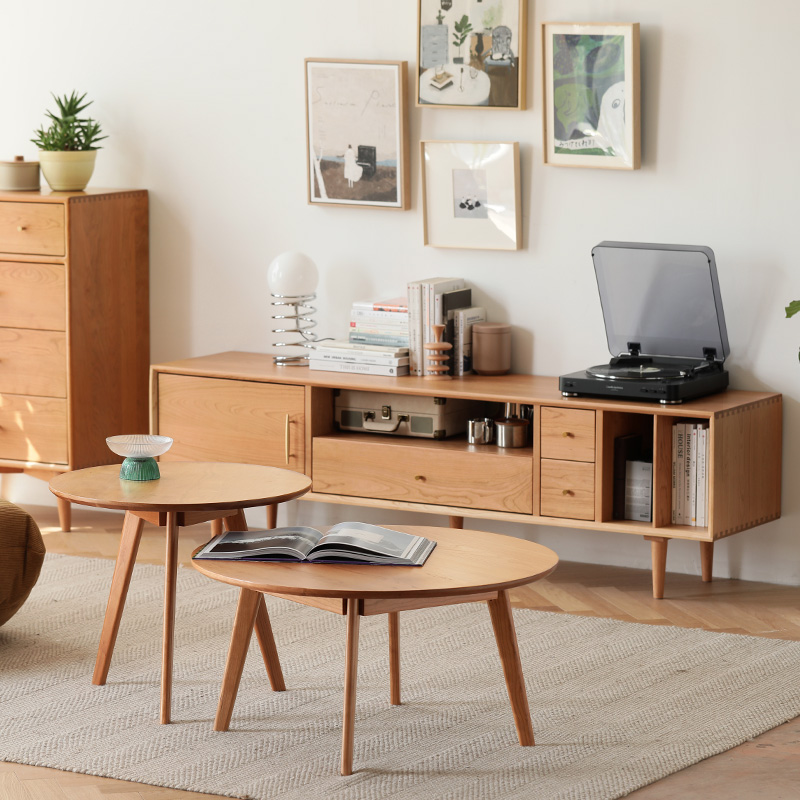 (White Oak) 2 m 1 TV cabinet (White Oak) 2 m 1 TV cabinet simple round coffee table (cherry wood) 2 m 1 TV cabinet (cherry wood) 2 m 1 TV cabinet simple round coffee table