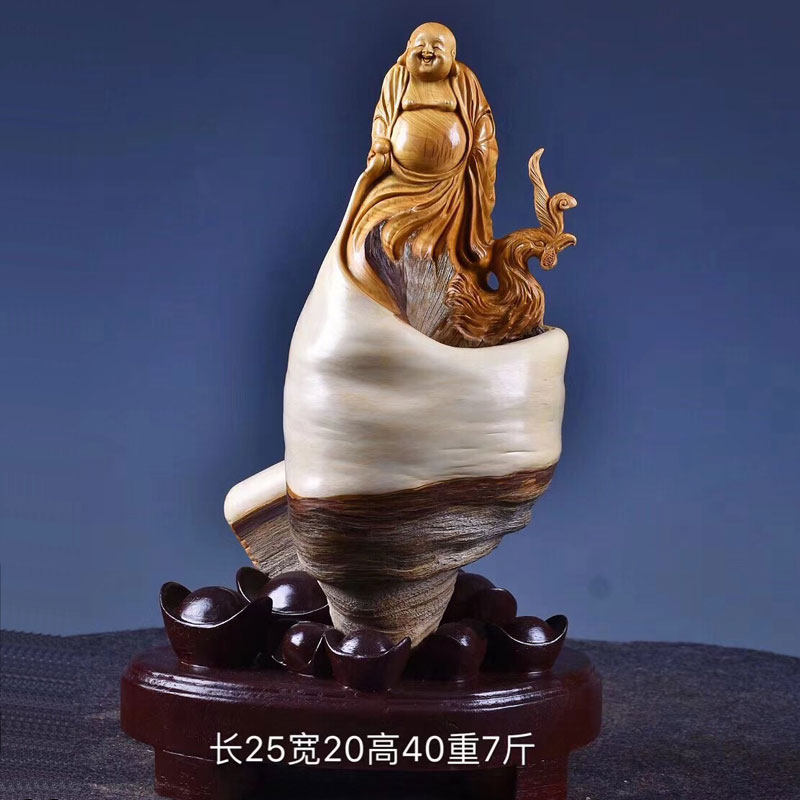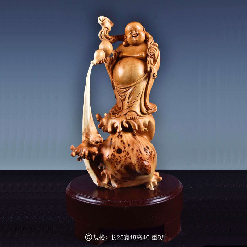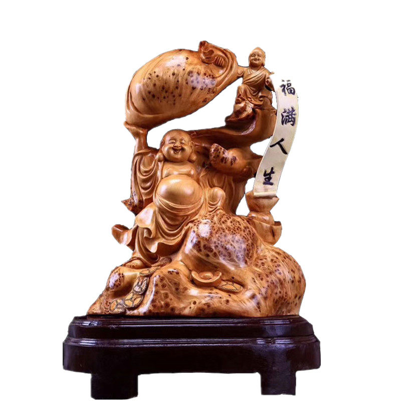 Taihang cliff cypress ornaments root carving Maitreya Guanyin living room Natural type carving tree root aging material wood carving craft gift decoration
