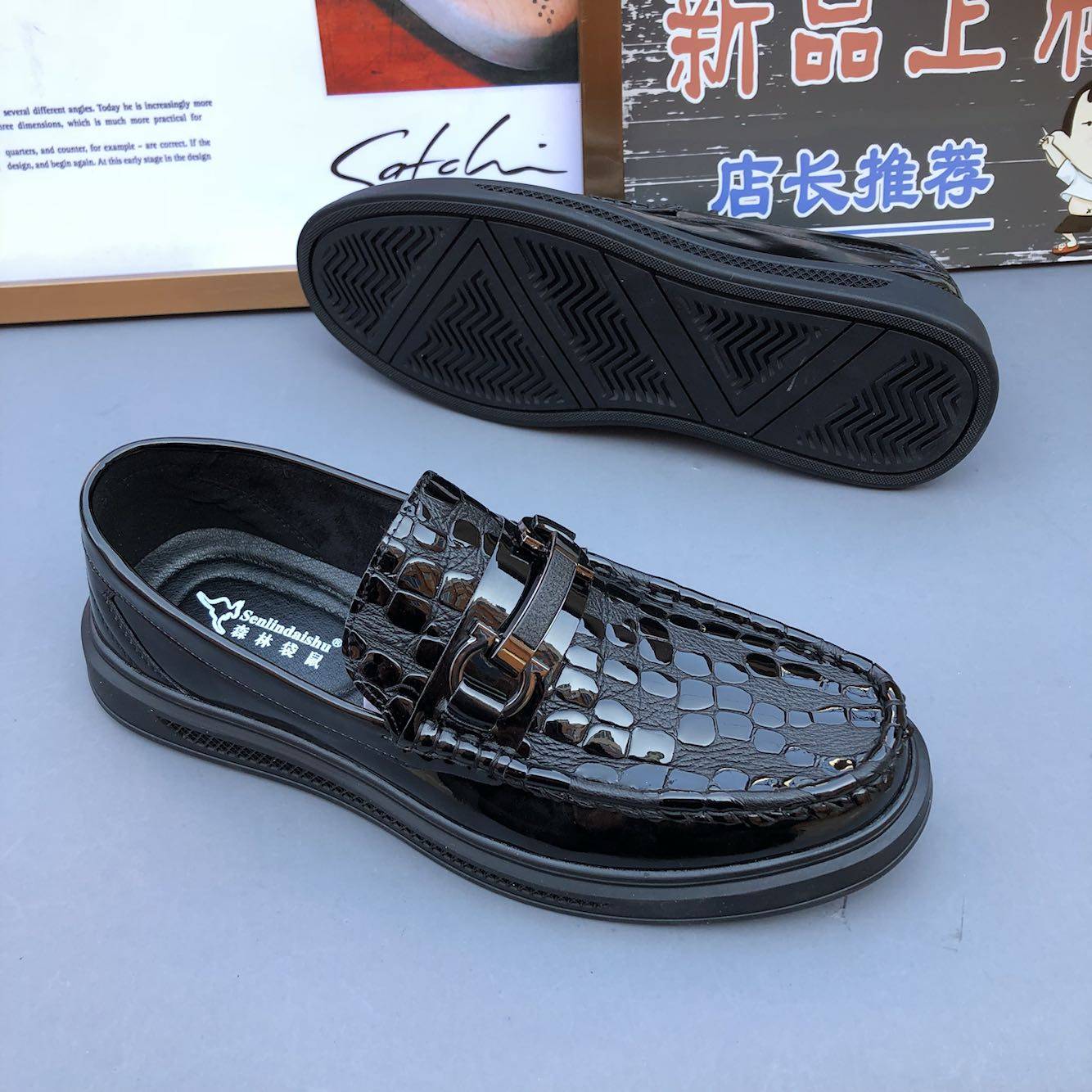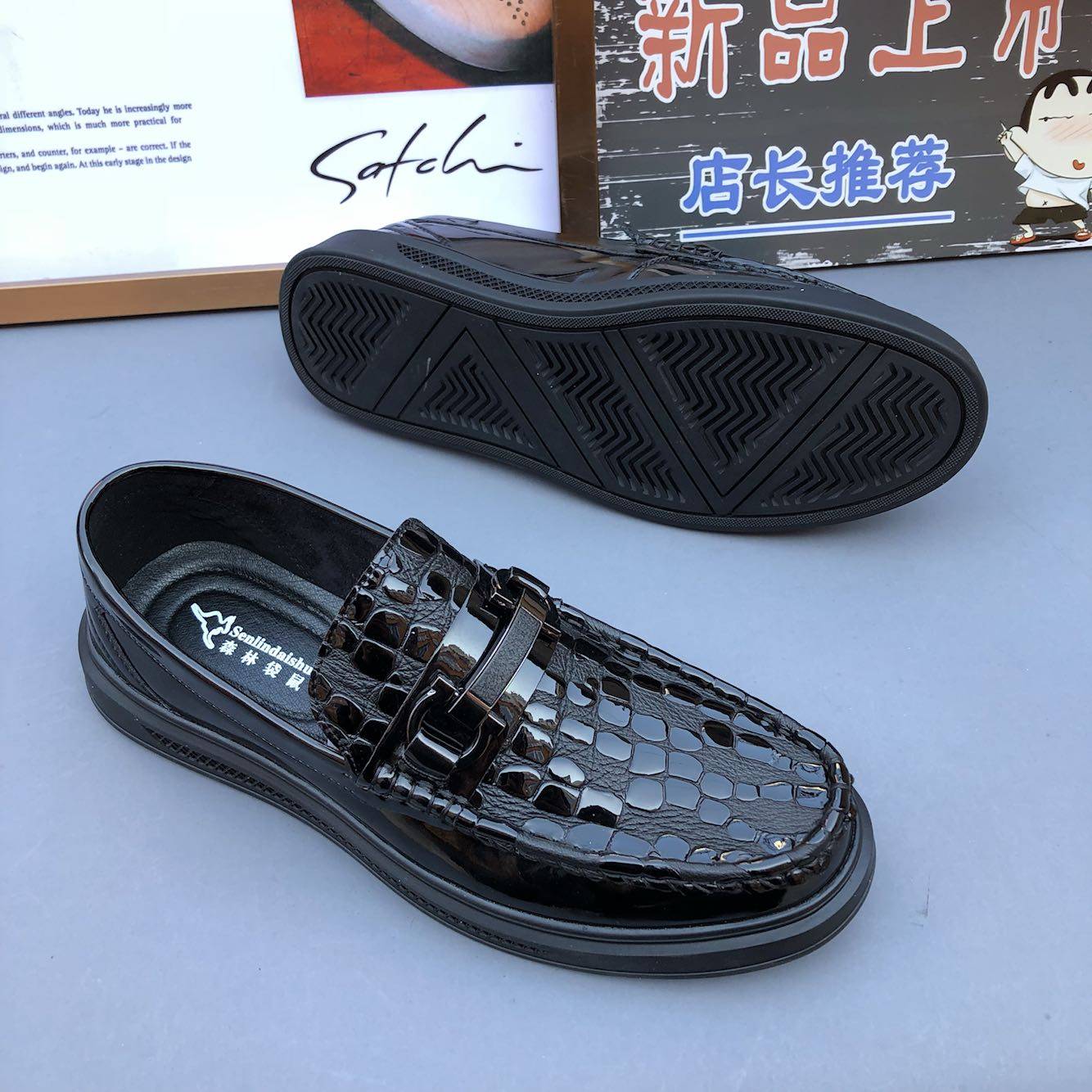 New Lacquer Leather Bean men's shoes Han version Leisure cover Inn business leather shoes European Station Driving Soft Bottom Shoes Spring and Autumn