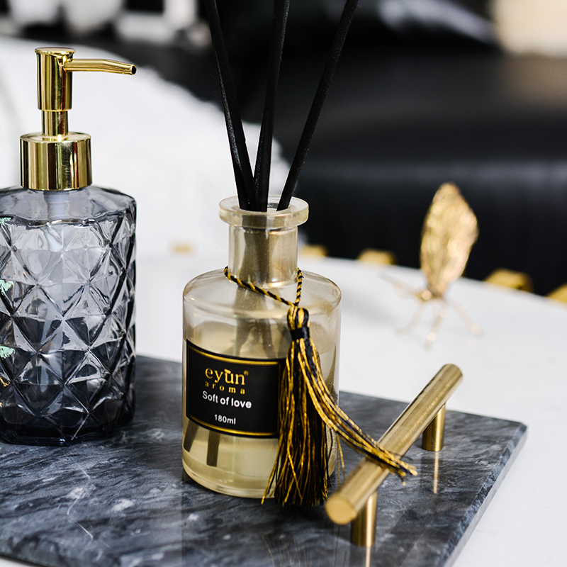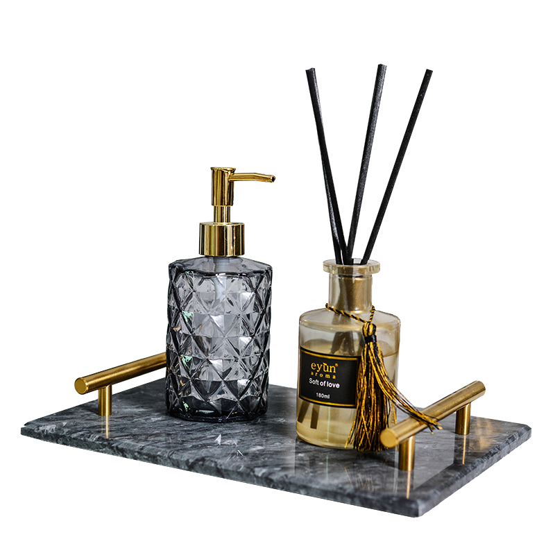 As shown in the picture, a set of marble binaural gray tray Gold tassel aromatherapy ash diamond sub-bottle