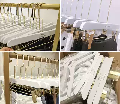 Golden flat hook double line white wooden trouser rack paint pure white solid wood trouser clip clothing store adult hotel trouser rack