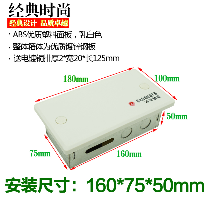 High-end concealed local equipotential terminal box ABS plastic panel TD28 equipotential box with copper row