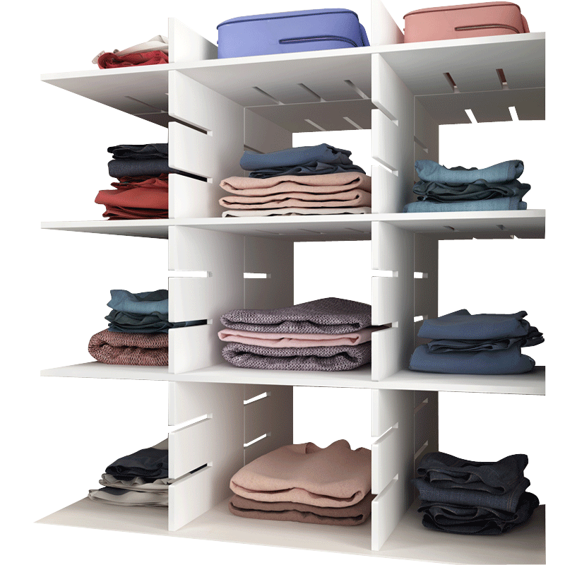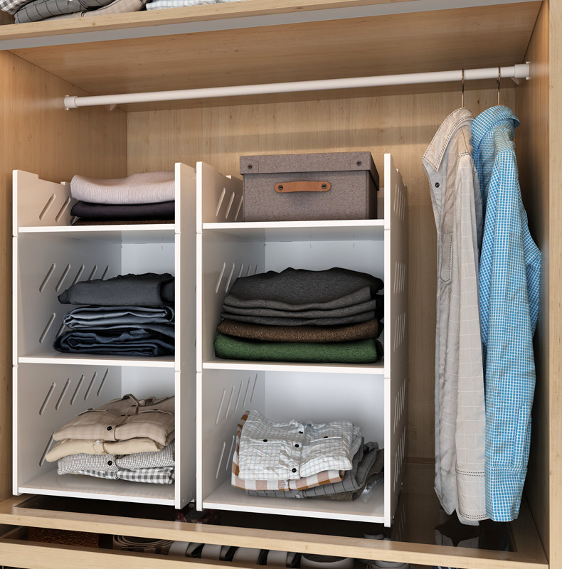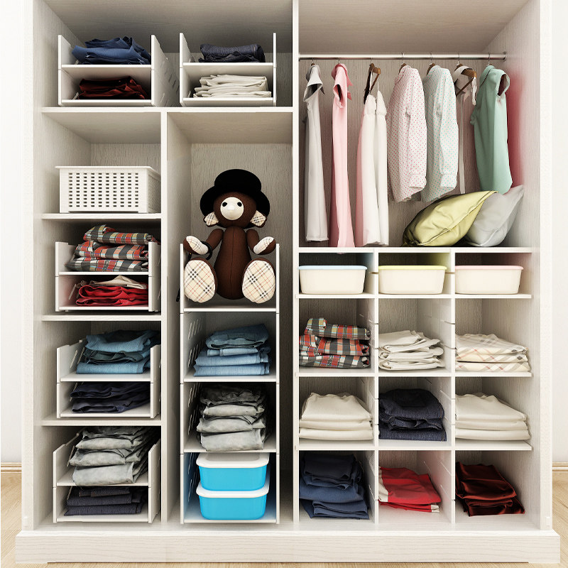Nail-free wardrobe divider free combination layered partition bookcase storage grid shelf clothes storage artifacts