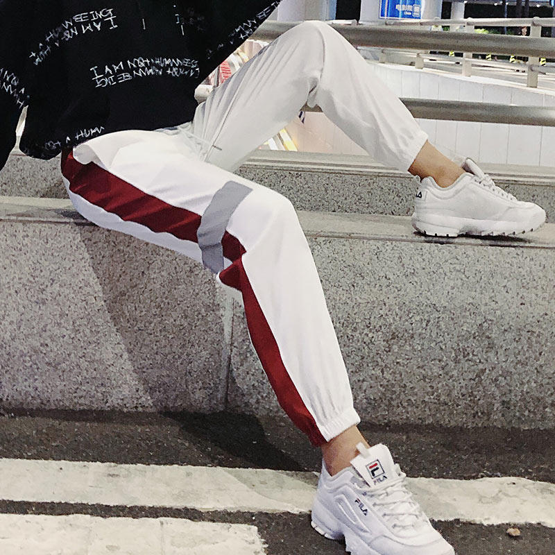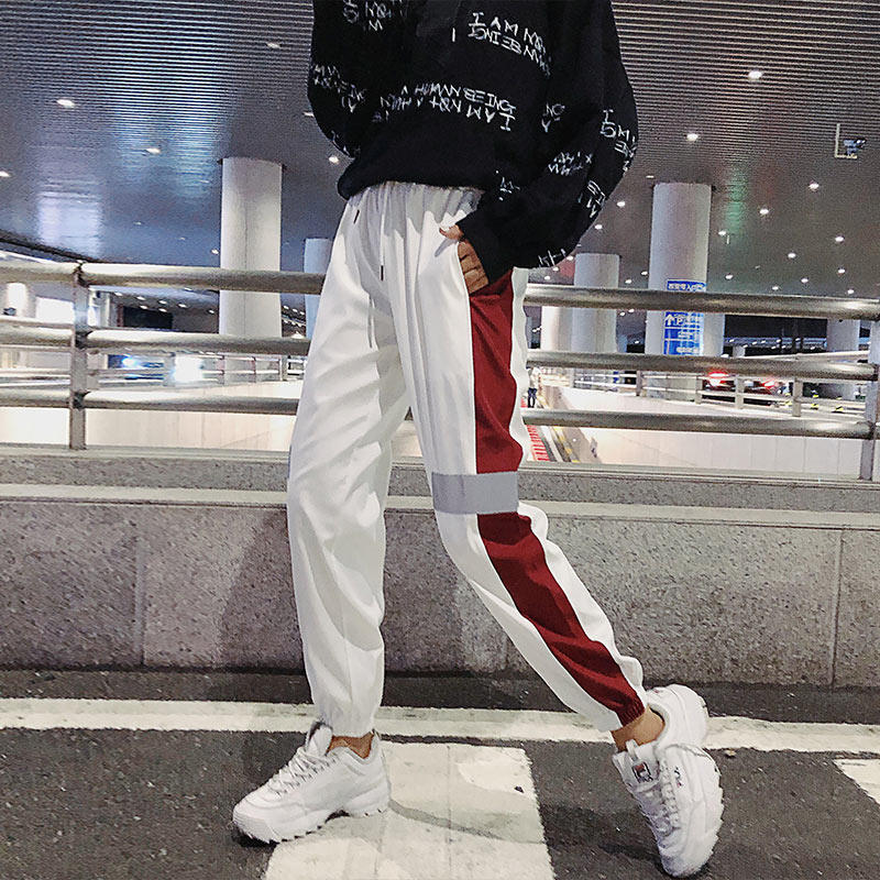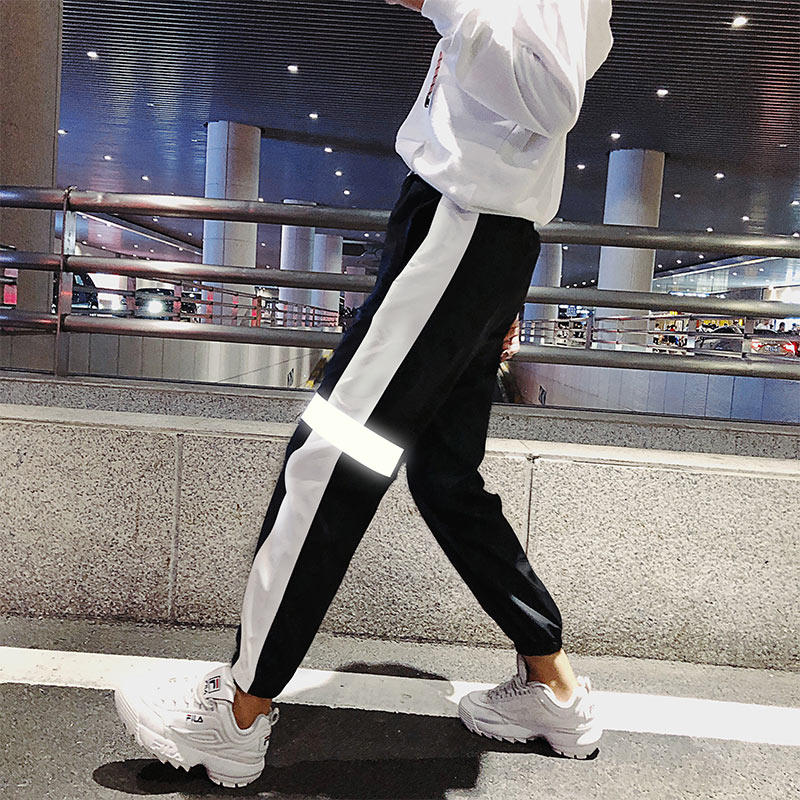 Sports Pants Women Ins Tide Fall Loose Bunches Hip Hop Hip Hop Women Pants Casual Speed Dry Roperin Reflective Lantern Long Pants