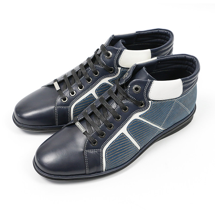 Special 599-GF spring men lacing high cylinder casual leather shoes blue and white splicing calf leather