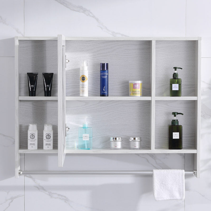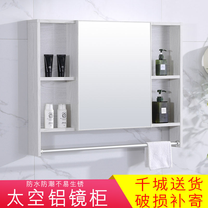 Space aluminum bathroom mirror cabinet with towel bar hanging wall mirror box bathroom mirror with storage rack wall storage mirror
