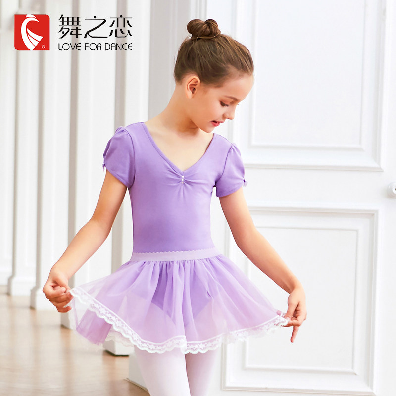 Dance of Love Children's Dance Dress Summer Short Sleeve Ballet Skirt Chinese Dance Costume Girls Exercise Dress Dance Skirt