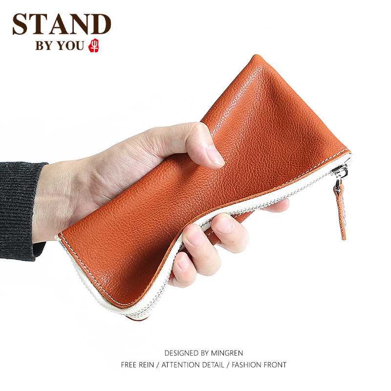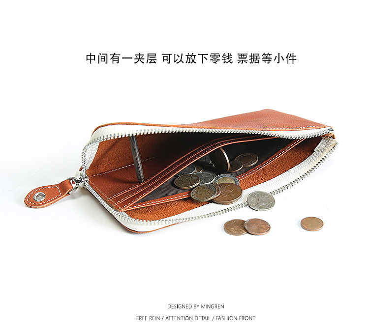 Handmade wallet men's leather long version First layer cowhide zipper wallet Ultra-thin youth casual retro wallet
