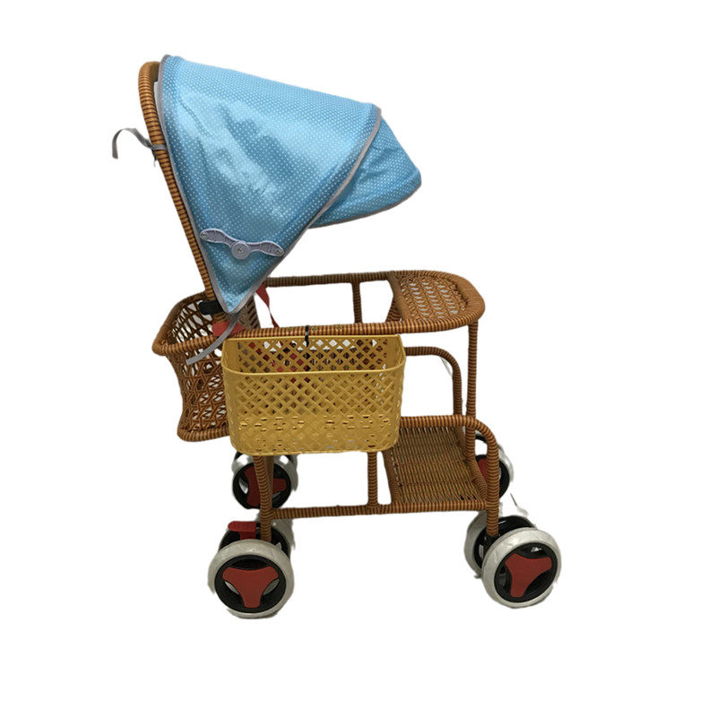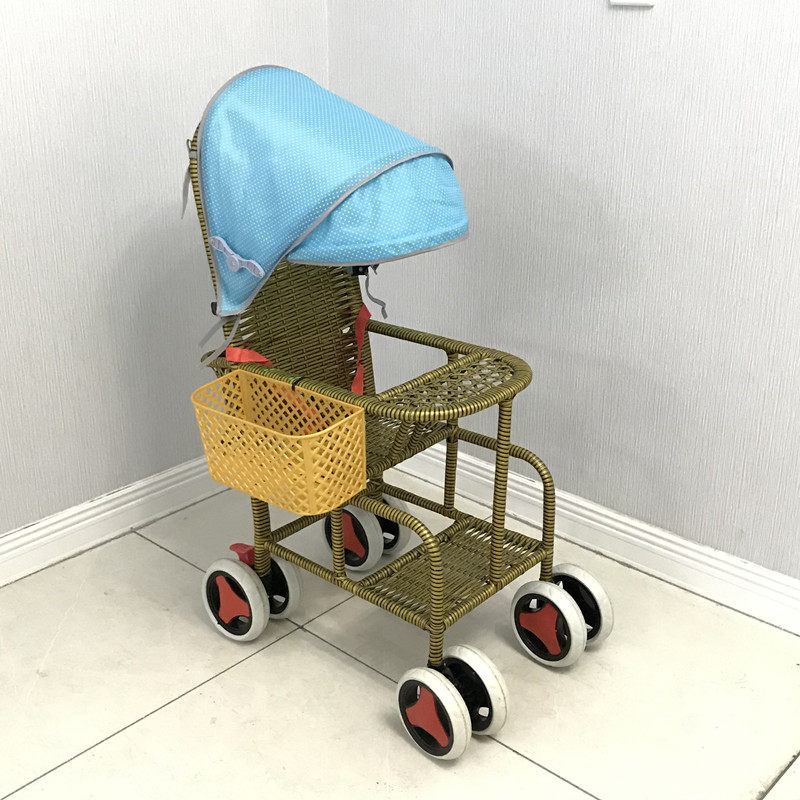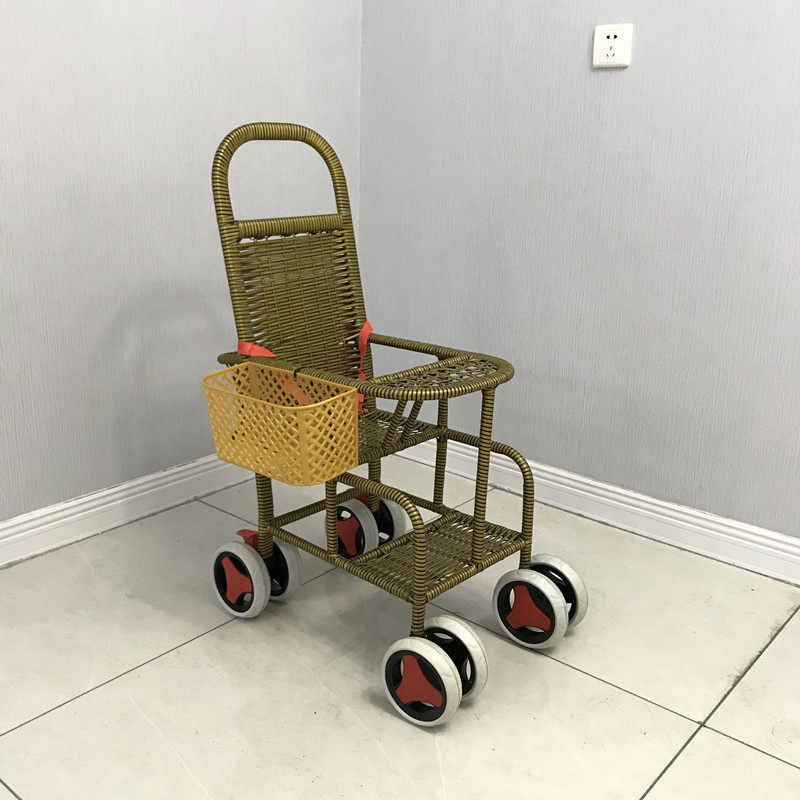 New baby bamboo and rattan light children's stroller shade rattan imitation rattan children's rattan chair trolley plus wheel sitting