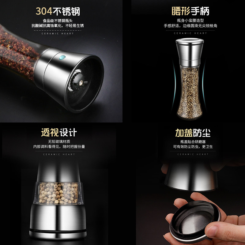 German 304 stainless steel pepper grinder household manual grinding pepper black pepper grain pepper grinding bottle