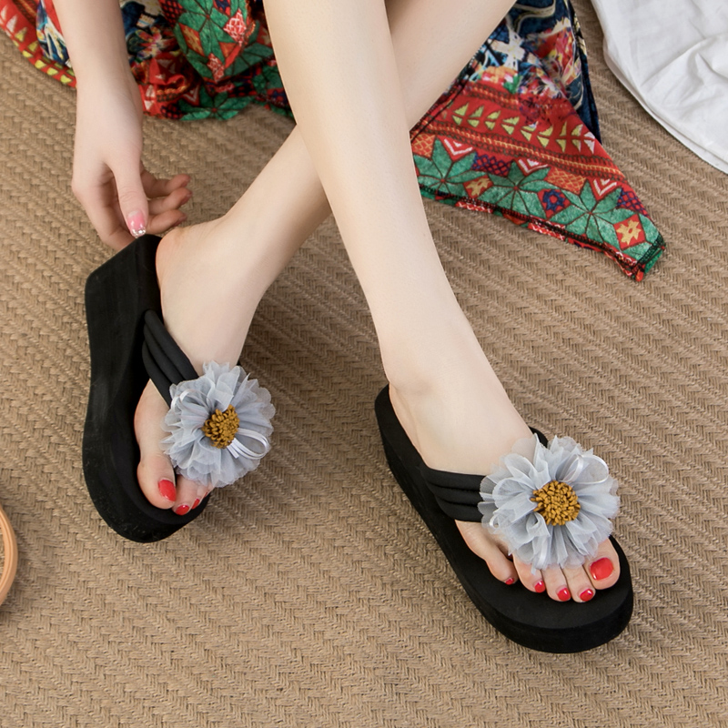 Slippers Women's Summer Fashion High Heel Sandals Outwear Flowers Herringbone Tug 2022 New Slopes Heel Non-slip Beach Shoes