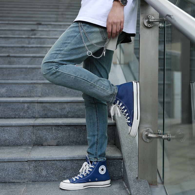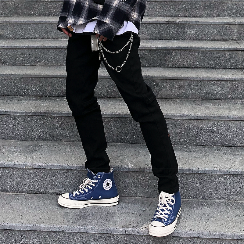 PCMY Tide Couple Blue Jeans Men and Women Han Edition Spring Trend Flexibility Repair Nine-pants Black