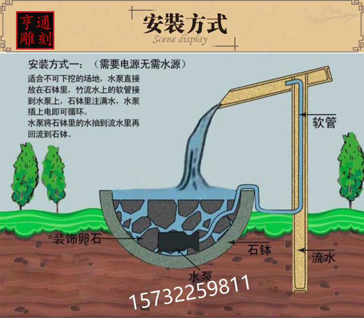 50cm diameter stone bowl Bamboo flowing water (static) 60cm diameter stone bowl Bamboo flowing water (static) 50cm diameter stone bowl Bamboo flowing water (stunned deer) 60cm diameter stone bowl