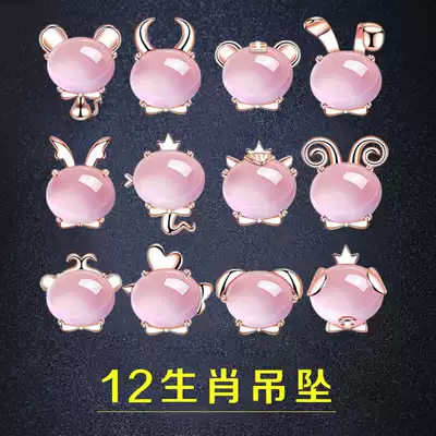 Rose golden pink crystal (Zodiac notes do not include chain) silver color inlaid with natural white chalcedony (Zodiac remarks do not contain chain) silver color inlaid powder (Zodiac remarks do not contain chain)