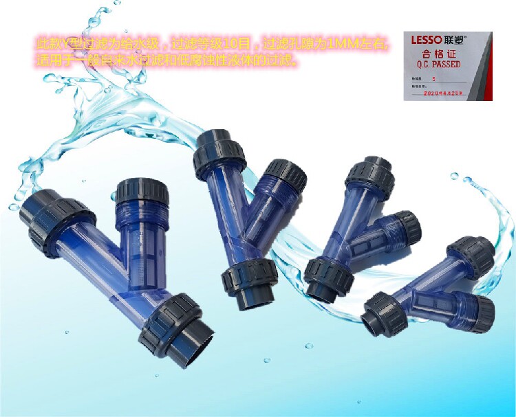 United Plastic PVC-U Tap Water Filter DN15DN50UPVC Feed Water Plastic Water Purification Industrial Piping Y-type Transparent