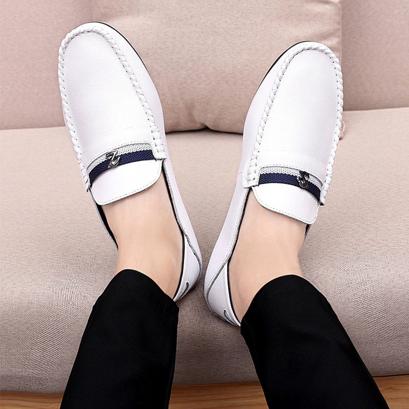 Net red identical white bean-bean shoe men's genuine leather Korean version 100 hitchhiking shoes Summer breathable 2022 new casual leather shoes