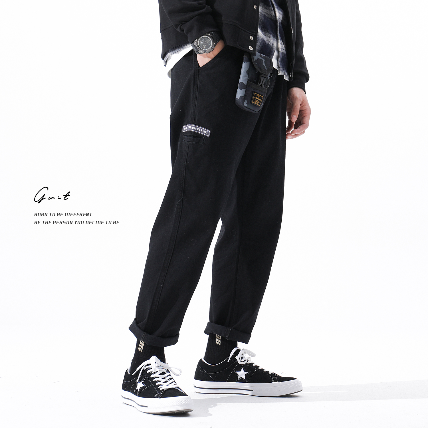 GWIT side digging bag spring and autumn new straight loose overalls men cargo Yu Wenle port style casual trousers