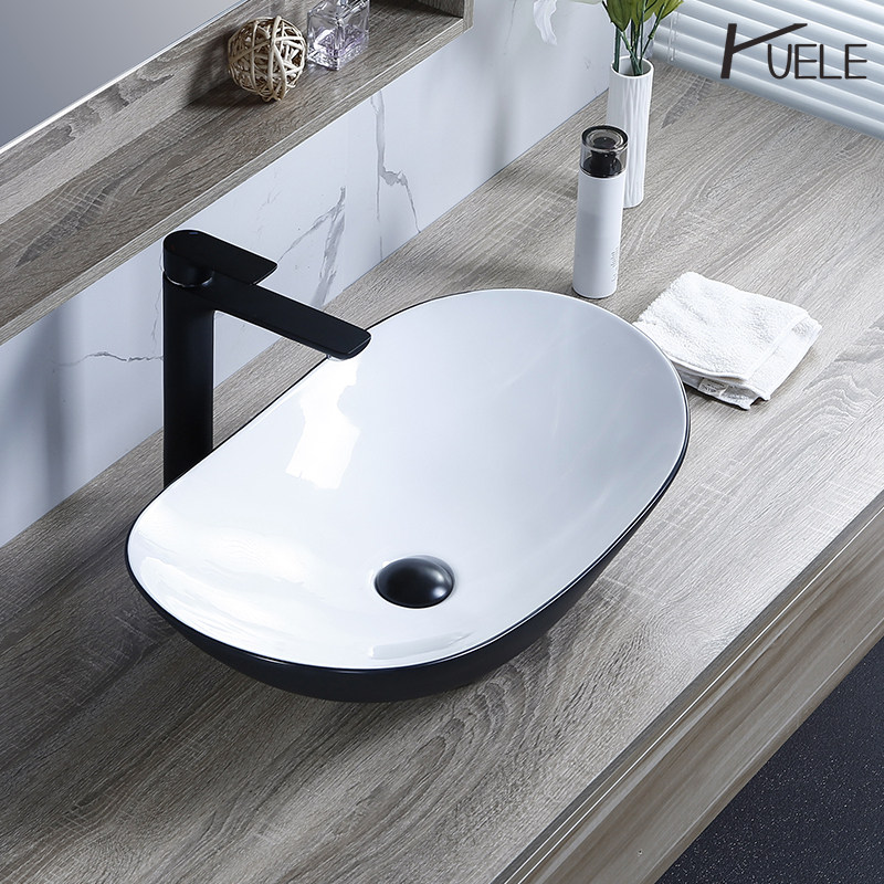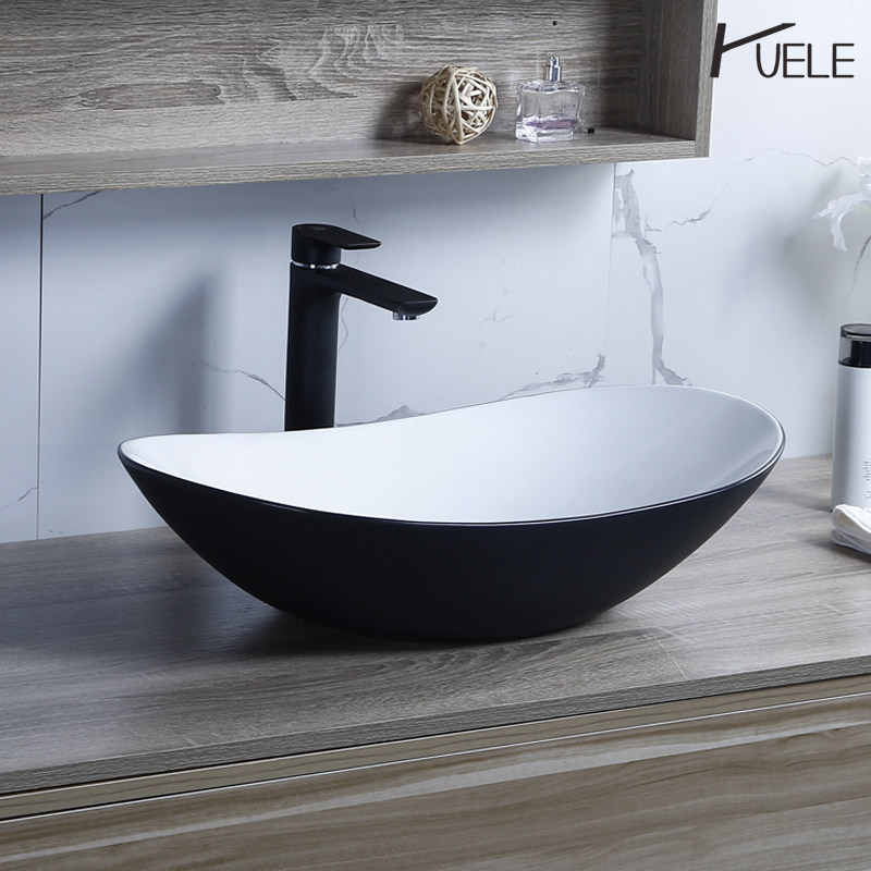 White single sink Frosted black with elegant black faucet White basin with water Frosted black with drip faucet White basin with rotating faucet Outside black and inside white Single sink White basin with elegant black faucet Outside black and inside