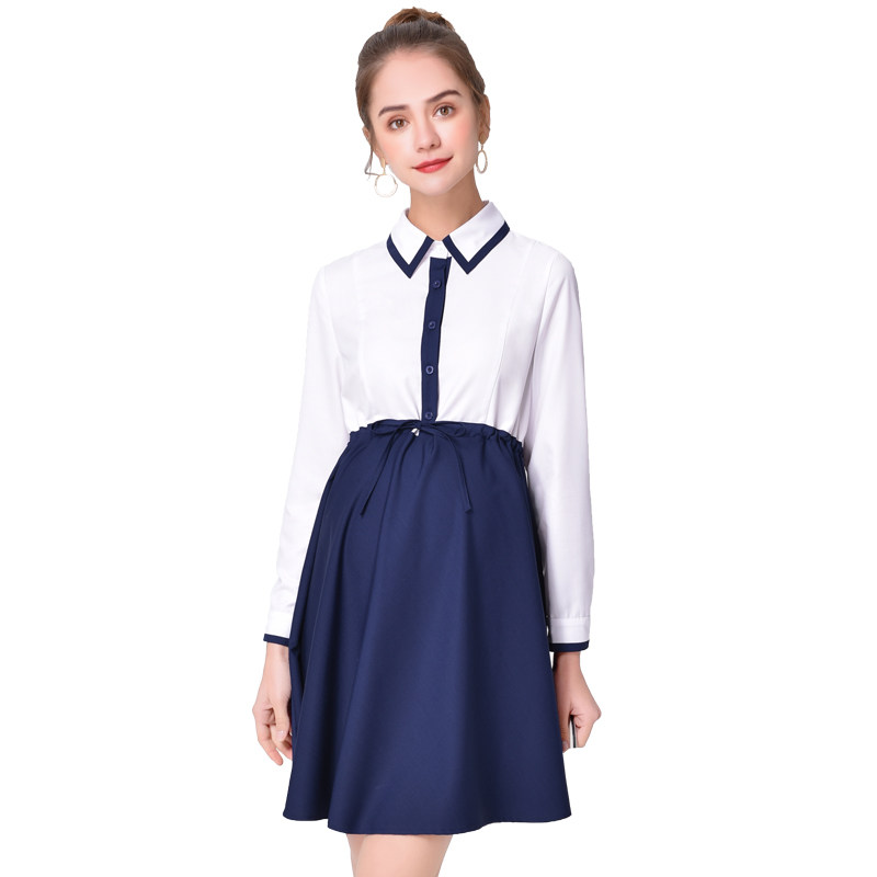 Pregnancy Woman Dress Autumn Dress Pregnant Women's Women's Professional Business Interview Tooling Middle Long Version Fall Long Sleeve Blouse Loose