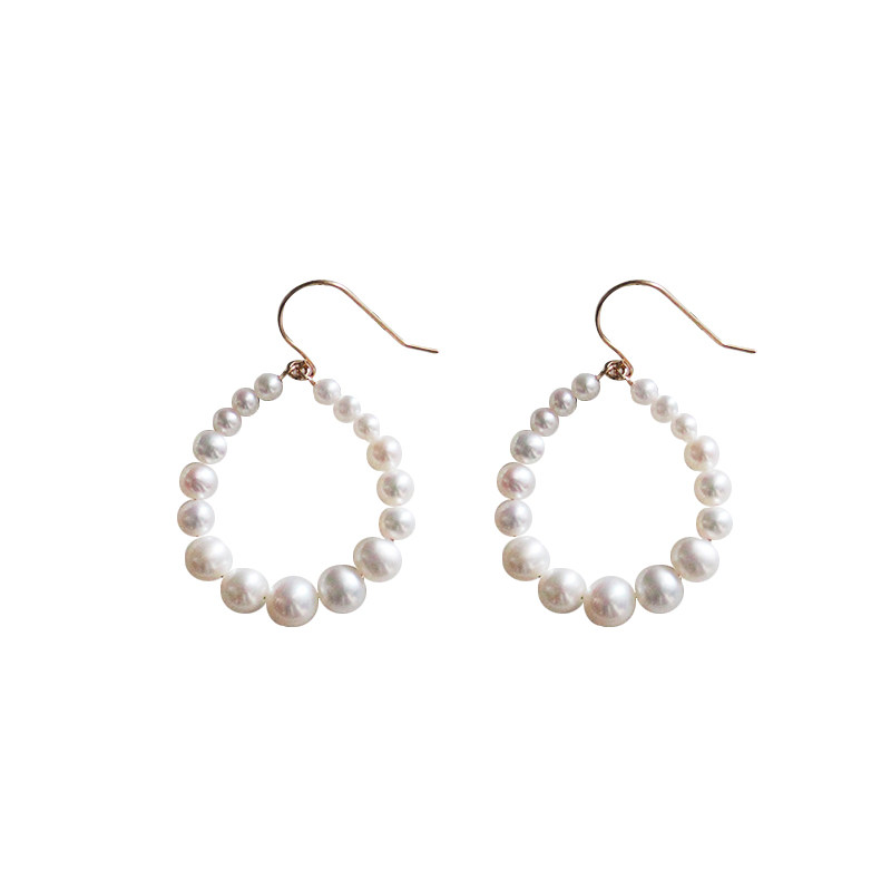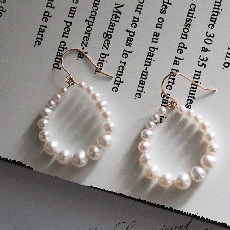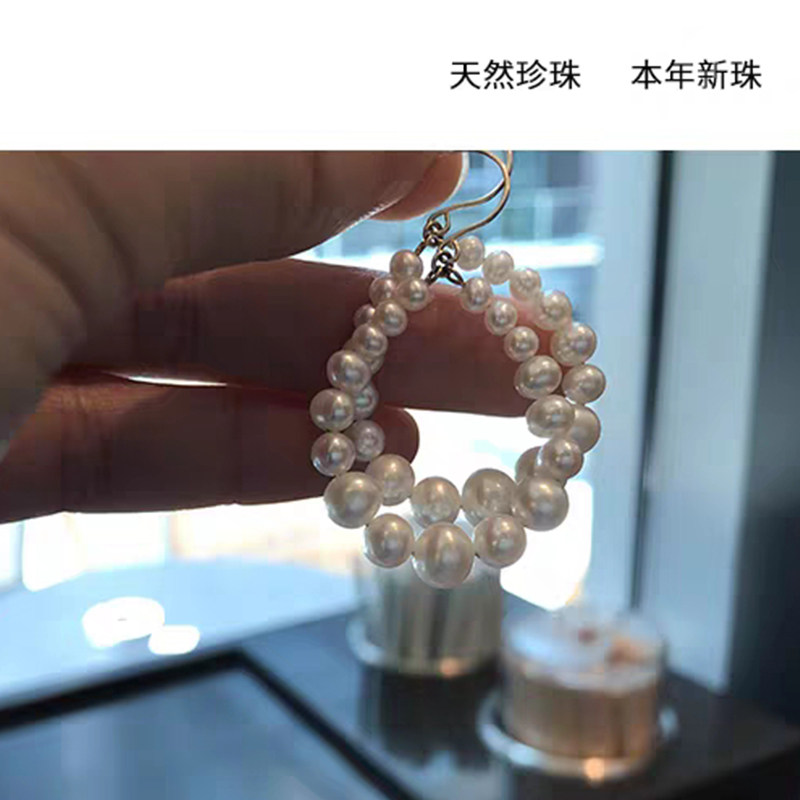 Freshwater circle pearl earrings for girls new Zhuji wear large circle with imported gold O round ear hook earrings earrings