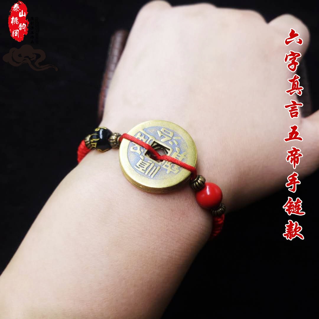 Six words true red Five emperors superimposed by hand, true words red Five emperors superimposed footchains Six words true black Five emperors superimposed hand-made six words true black Five emperors superimposed foot chain Six words true words red single bronze money hand Alchemy