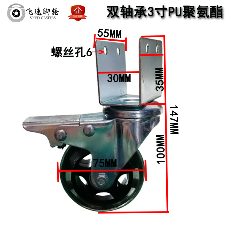 Universal wheel splinter 30M baby ashes caster furniture table and chair wheel 3 inch polyurethane silent pulley holistic cabinet