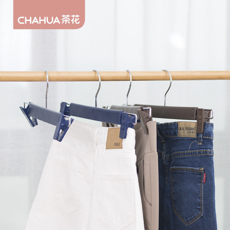 Camellia trousers rack 2 pack telescopic length adjustable trousers hanger plastic stainless steel men's and women's trouser clip