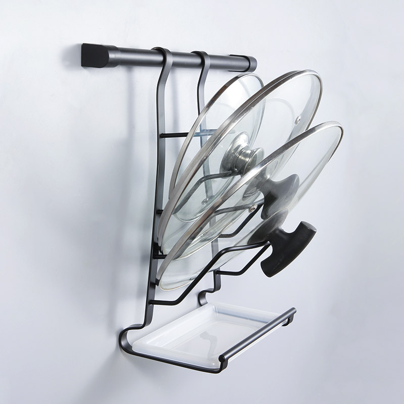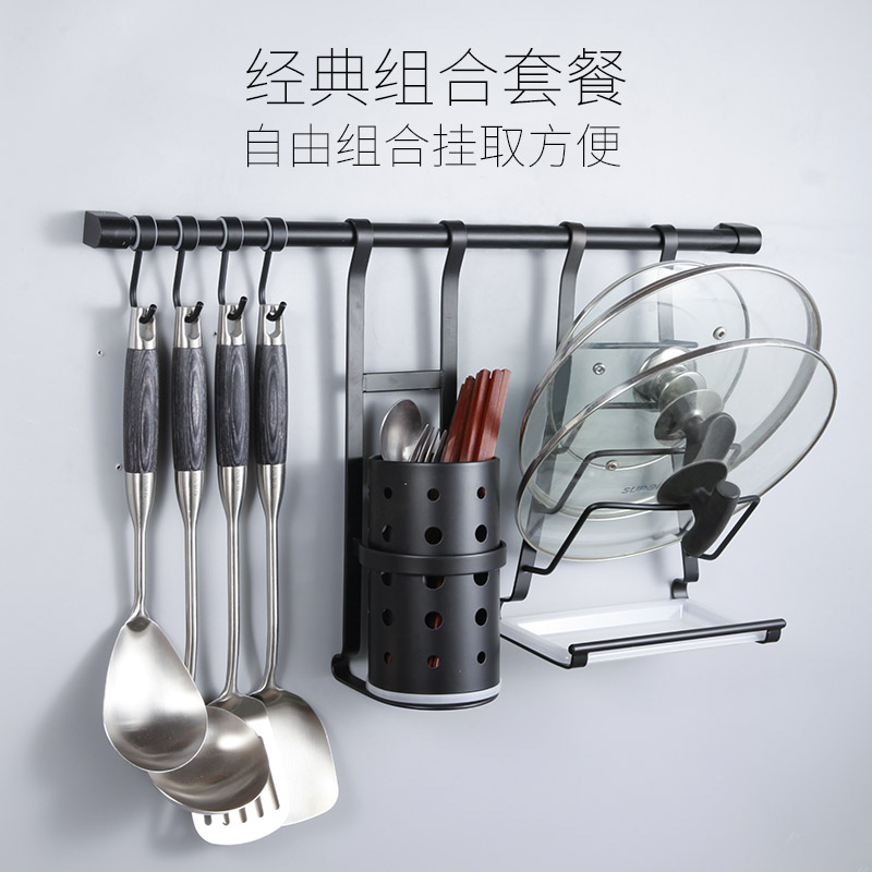 Black Kitchen Lid Rack Free of perforated stainless steel chopstick cage Cutting Board Kitchenware Wall-mounted Rod Hook Shelve