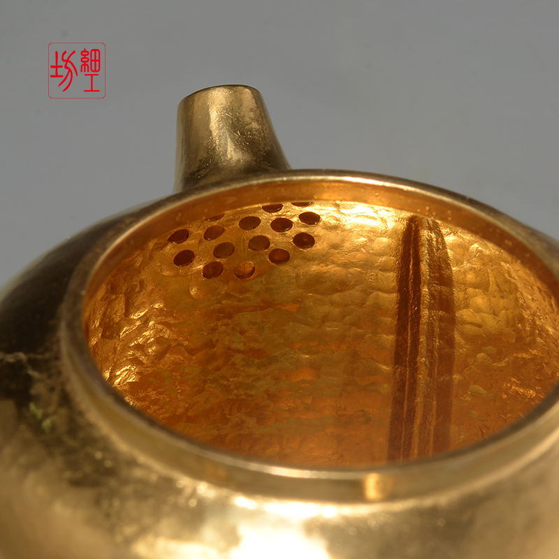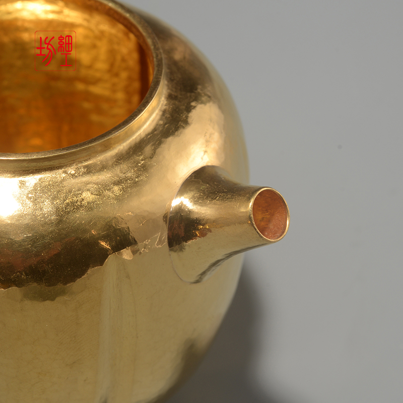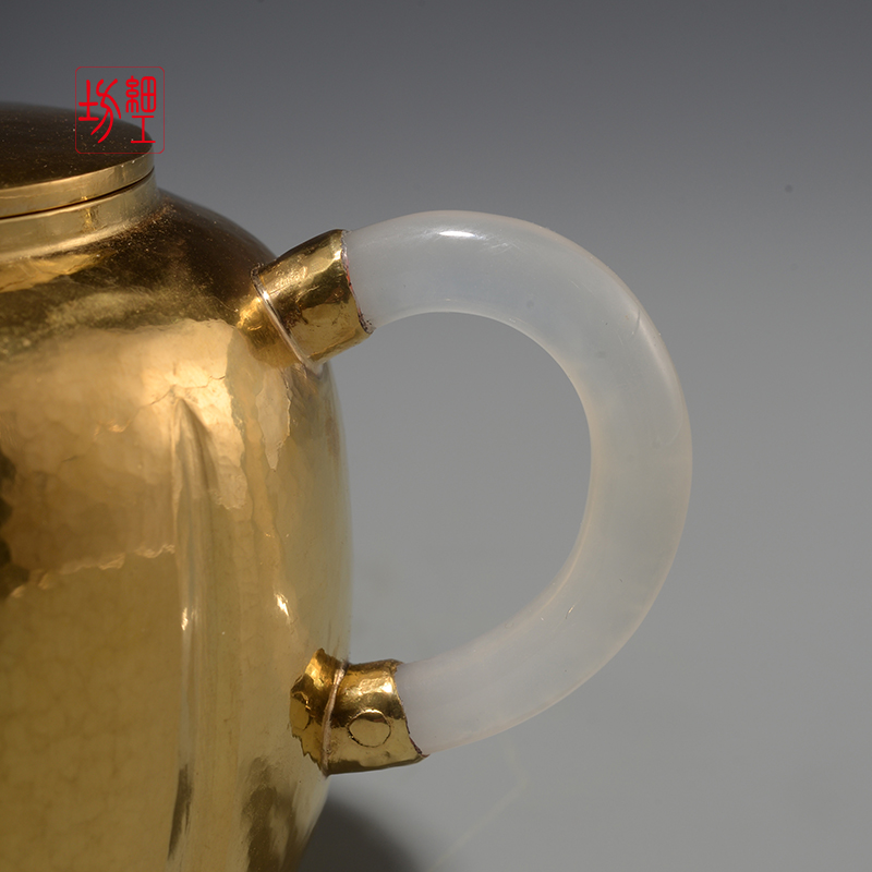 Japanese fine workshop gold pot thousand pure gold 999 pure handmade gold pot jade handle melon-shaped urgent beard