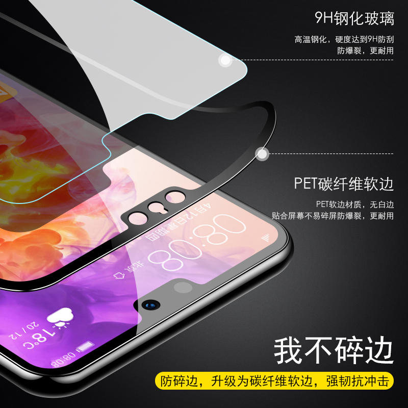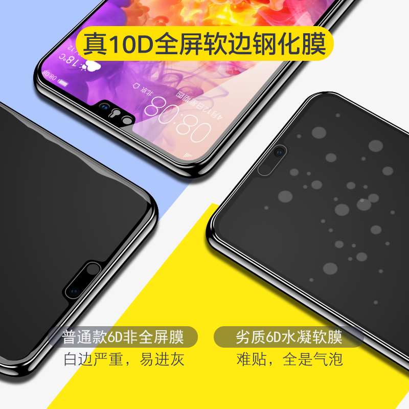 Suitable for Huawei p20 steel film fullscreen coverage p20pro curved soft edge p 20 mobile phone full-pack edge p20por anti-fall anti-blue eye protection fingerprint no white edge just chemical eml black edge