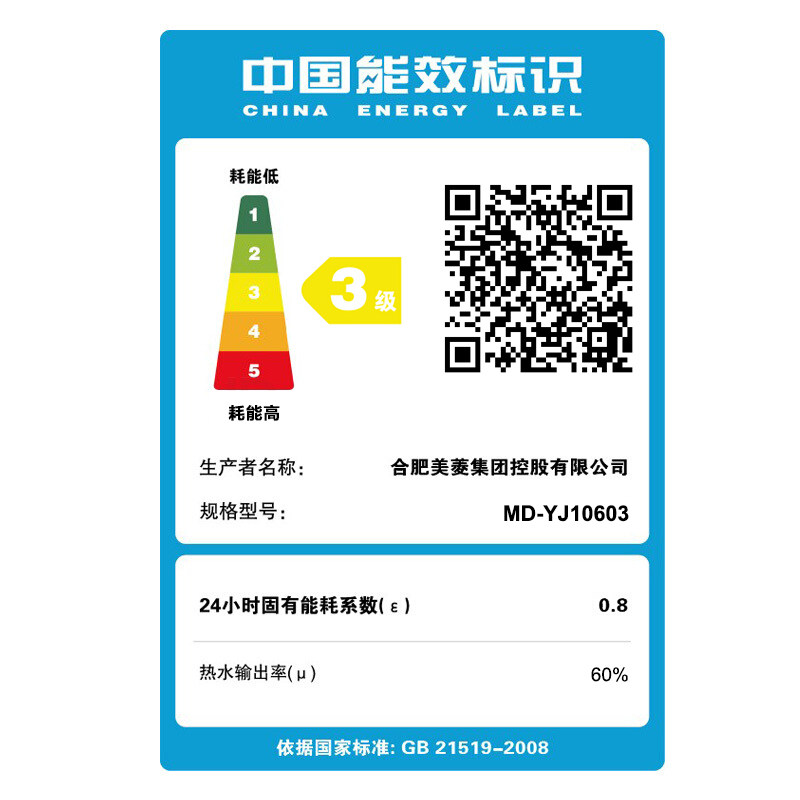 MeiLing MeiLing MD-YJ10603 60L water storage type electric water heater safety protection wall inner tank for 8 years