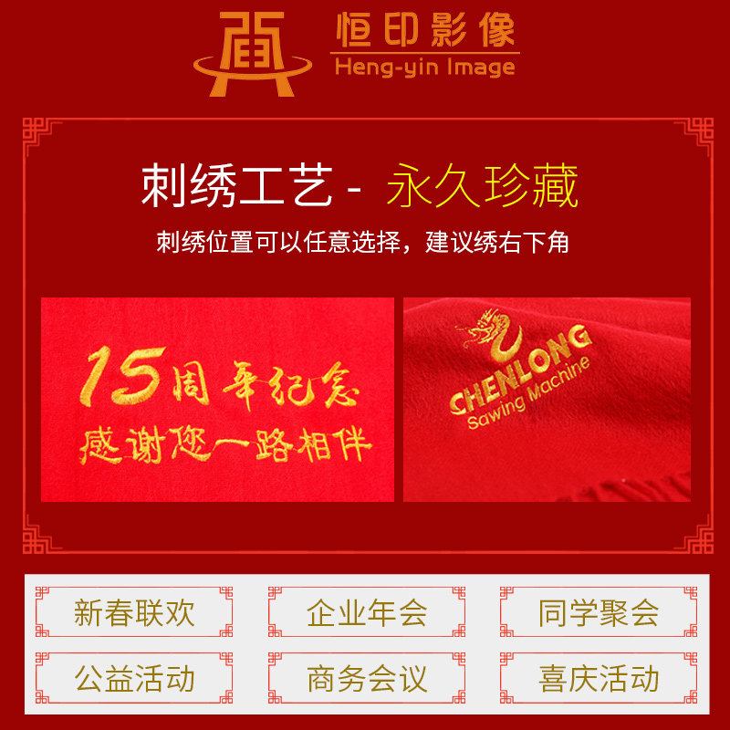 Hengseal Image scarf custom logo embroidery printing big red scarf company annual meeting opening activities classmates reunion