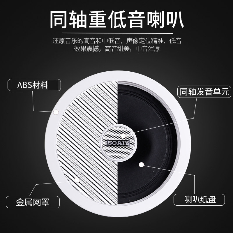 SOAI G10 wireless Bluetooth audio ceiling speaker background music Home living room coaxial suspended ceiling speaker Public address system Subwoofer engineering Commercial equipment Shopping mall supermarket universal