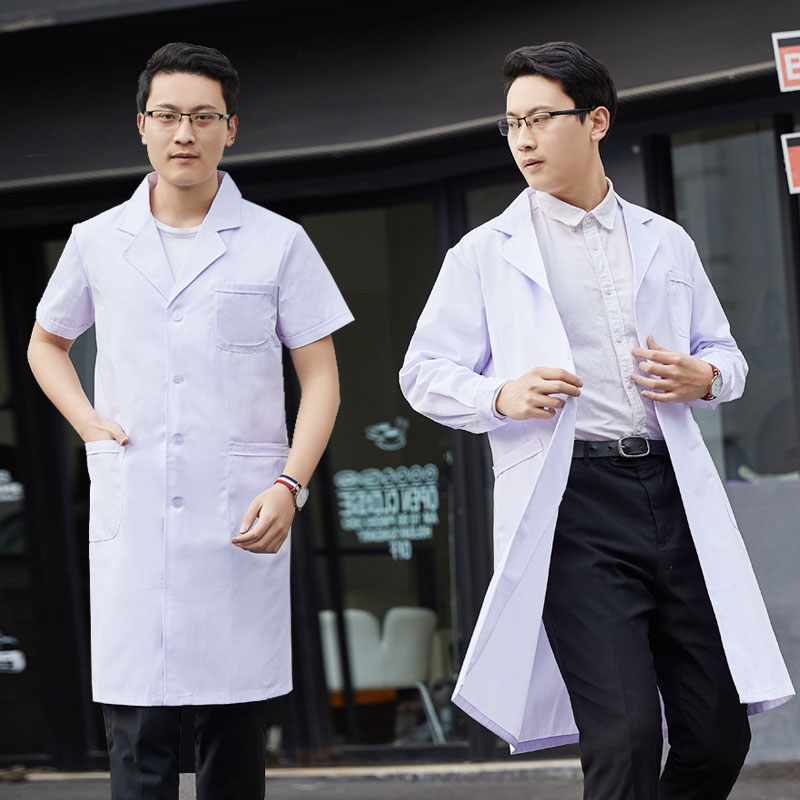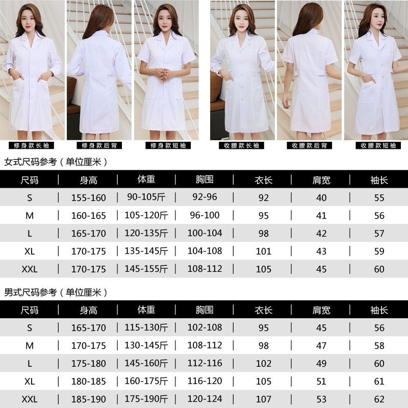 White coat long-sleeved doctor and female nurse clothing short-sleeved thin section laboratory chemistry college student beauty overalls long version