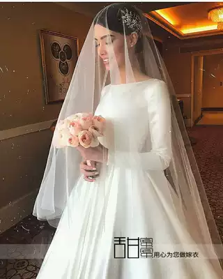 Wedding dress 2019 new bride shoulder long sleeve simple retro satin palace long tail main wedding dress