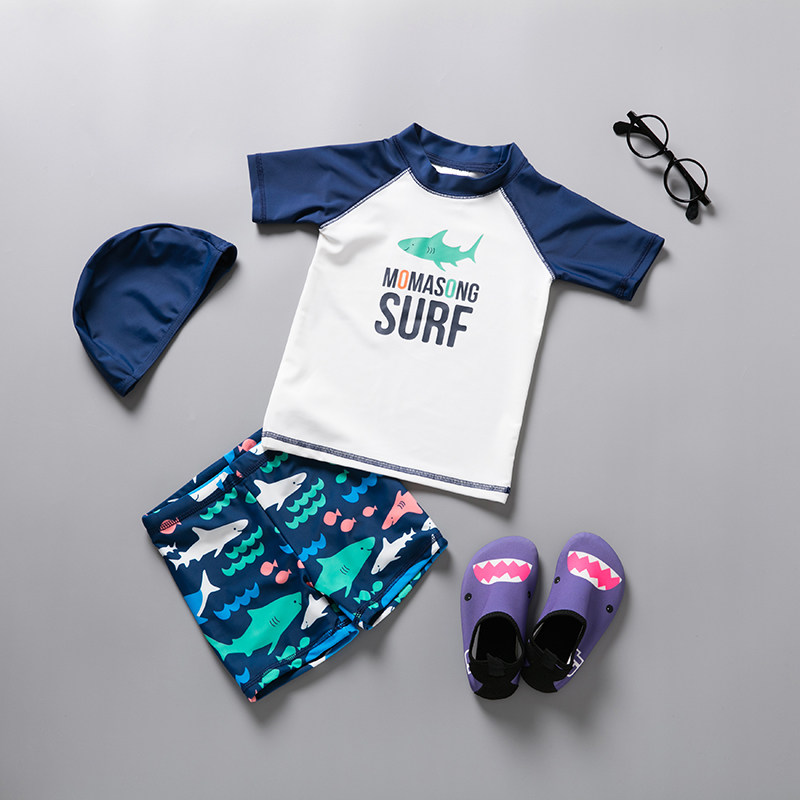 Kids swimsuit boys hot spring split in big kids small sunscreen quick drying boys baby swimsuit swim trunks cap set