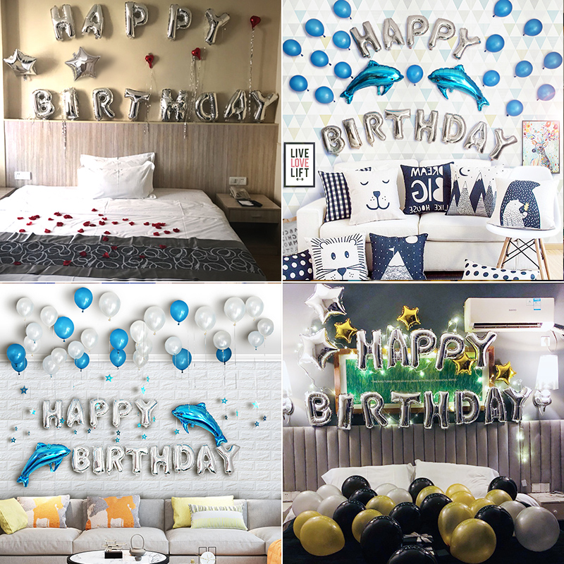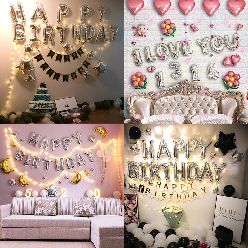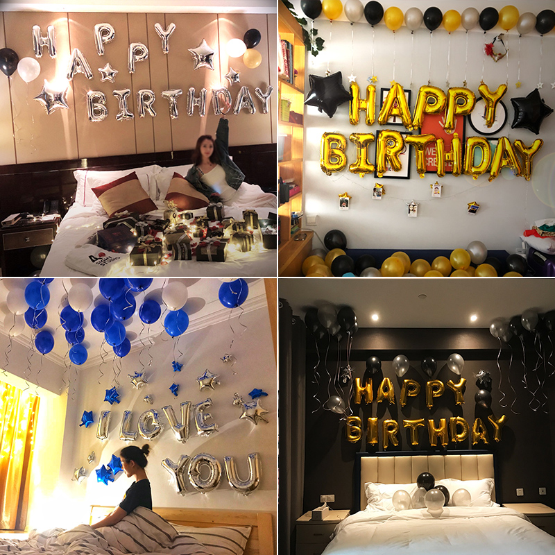 Birthday gold decoration suit Silver Star birthday suit Silver Star Love suit Gold Star birthday suit Golden Star tassel suit Blue Star decoration suit silver birthday decoration
