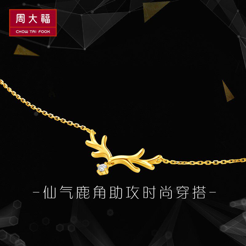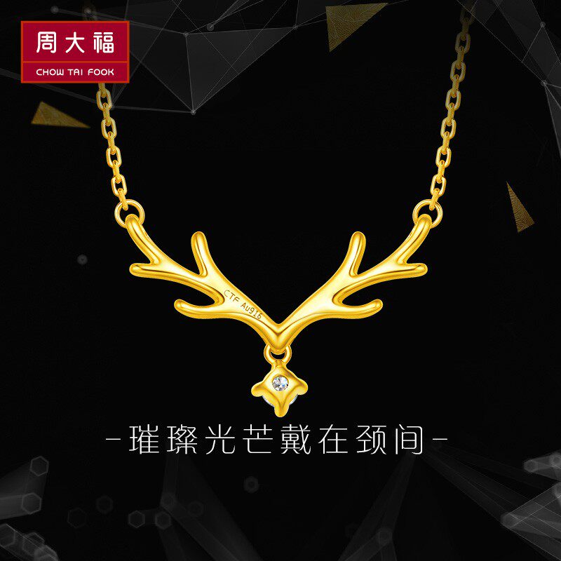 Chow Tai Fook 17916 series a deer with you 22K color gold diamond antler necklace pendant NU1977 preferred good goods